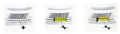 疊片為雜質(zhì)處理載體,它由一組雙面帶不同方向溝槽的塑料盤片相疊加構(gòu)成, 其相鄰面上的溝槽棱邊便形成許許多多的交叉點,這些交叉點構(gòu)成了大量的空腔和不規(guī)則的通路,這些通路由外向里不斷縮小。過濾時,這些通路導(dǎo)致水的紊流,最終促使水中的雜質(zhì)被攔截在各個交叉點上。如把盤片疊加安裝在過濾芯骨架上,在彈簧的壓力作用下就形成了緊壓的過濾單元。每個過濾單元中被彈簧壓緊的疊片便形成了無數(shù)道雜質(zhì)顆粒無法通過的濾網(wǎng),疊片寬度為130 mm,疊片材質(zhì)為優(yōu)質(zhì)工程塑料,耐磨性極高。輔以不銹鋼彈簧支撐,結(jié)構(gòu)堅固。反沖水流沿疊片內(nèi)壁切線方向自內(nèi)向外沖洗疊片表面粘附的各種雜質(zhì),疊片在反沖洗水流的作用下作旋轉(zhuǎn),保證所有污物均被有效洗凈并排出??墒褂脮r間間隔和壓力差控制反沖洗。一旦設(shè)定完畢,即可長期使用。自動反沖洗過濾器在不中斷工作的情況下在設(shè)定的時間內(nèi)完成整個自動反沖洗過程。采用這種過濾原理的過濾器在過濾和反沖洗時疊片間隙動態(tài)可變,對提高過濾性能、過濾水質(zhì)非常有利, 又可大大減少反洗用水量。盤片上溝槽的不同深淺和數(shù)量確定了過濾單元的過濾精度。 原理解釋如下圖