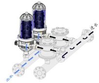 過濾階段的工作原理:水流通過過濾進水口進入過濾器內(nèi),通過過濾疊片時過濾疊片在彈簧力的作用下被緊緊地壓在一起,雜質(zhì)顆粒被截留在疊片交叉點,經(jīng)過過濾的水從過濾器主通道中流出,此時單向膈膜閥處于開啟狀態(tài)。如下圖